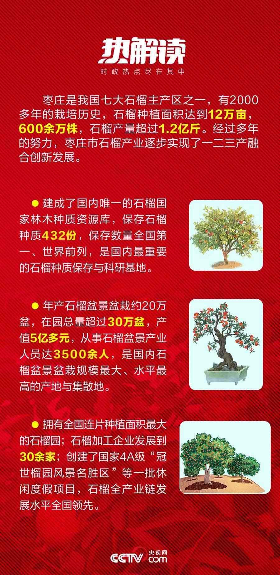 歷經(jīng)千年,當(dāng)年自異域“舶來”的奇珍異果,已經(jīng)成為遍地開花的致富果、幸福果。山東棗莊火紅的石榴給這座小城帶來了紅火的發(fā)展機遇,也給老百姓帶來了紅火的生活。