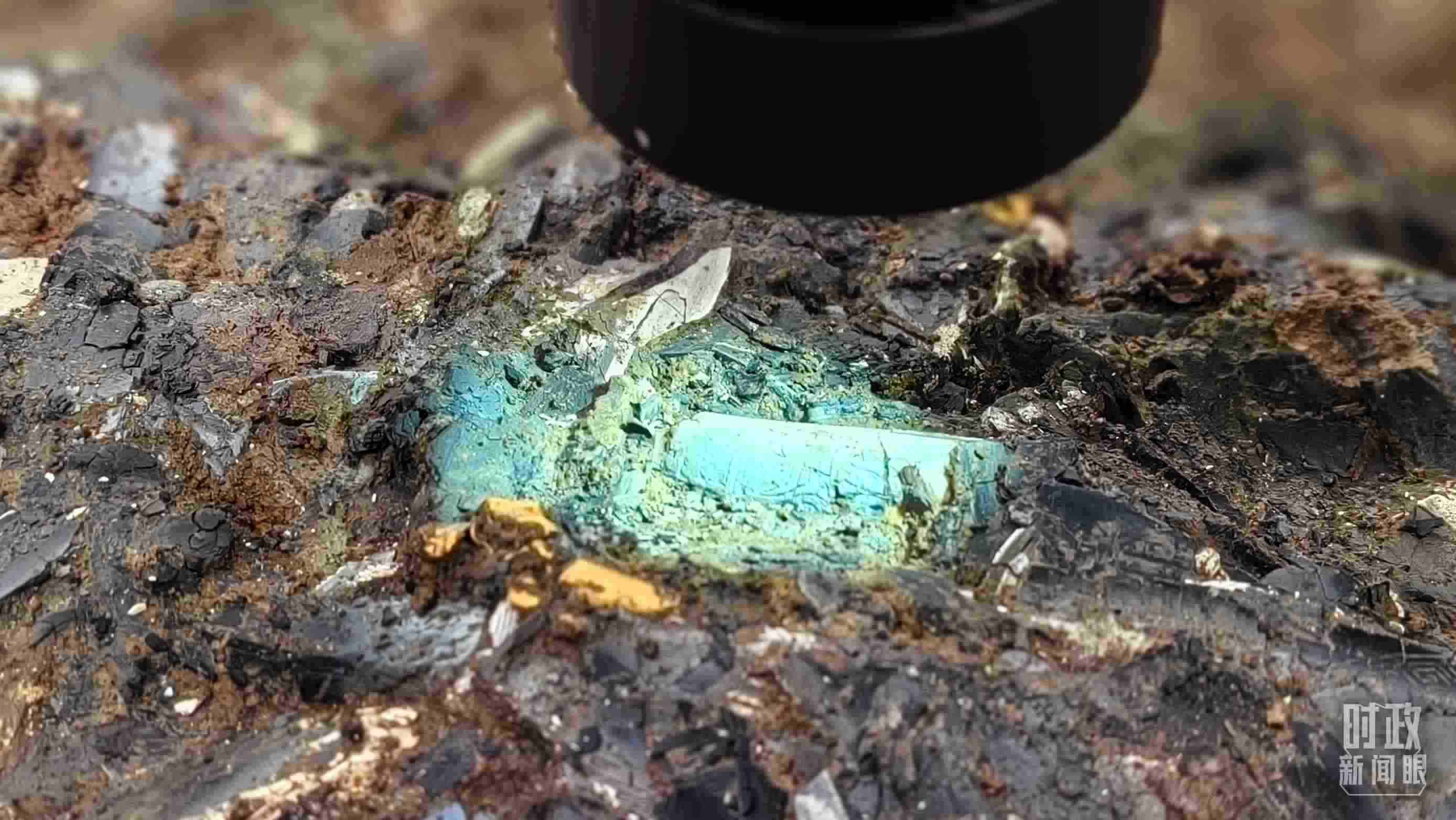 △顯微鏡下,三星堆文物的紋路清晰可見(jiàn)。(總臺(tái)央視記者王萌萌拍攝)