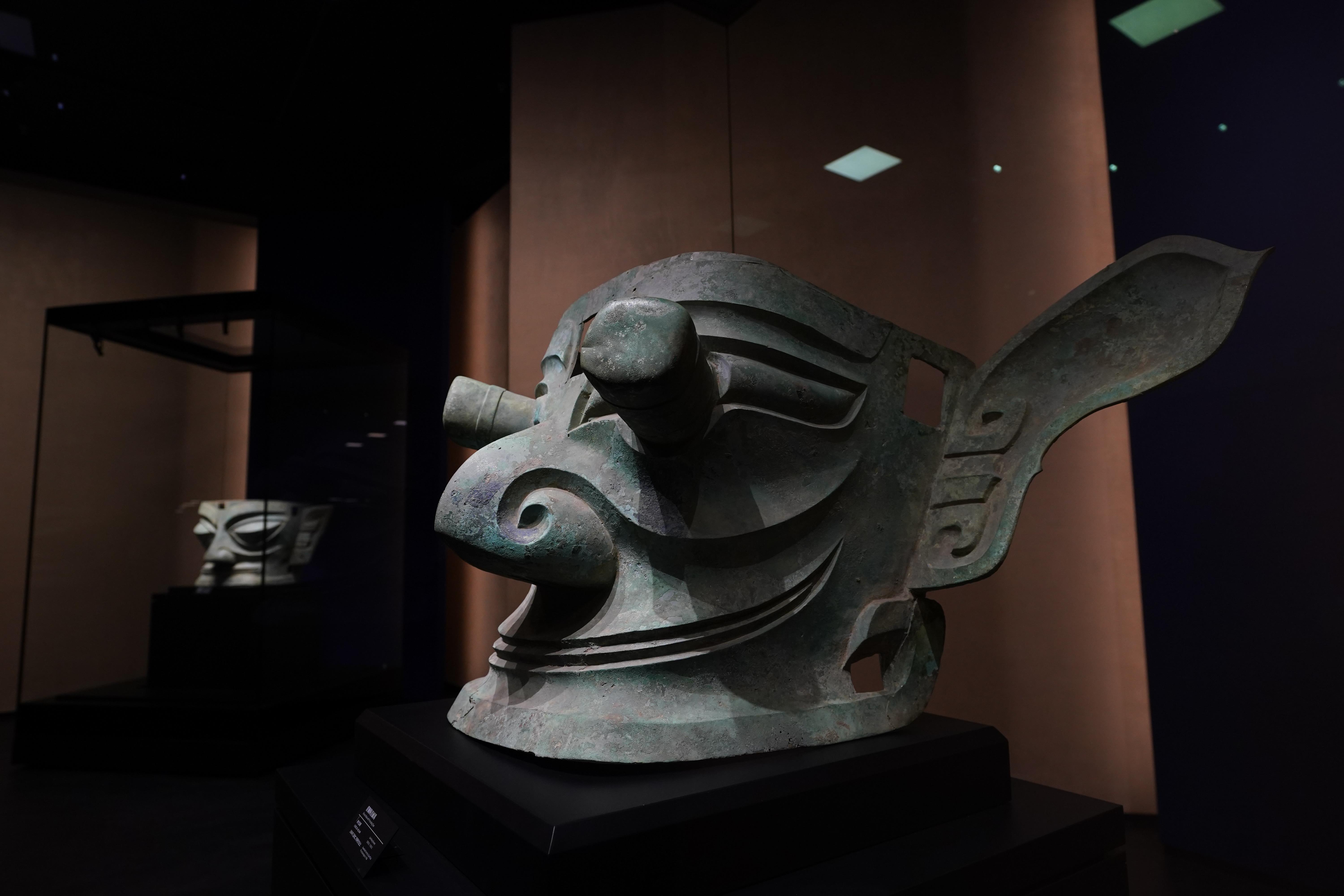 △三星堆青銅縱目面具。(總臺(tái)國廣記者李晉拍攝)