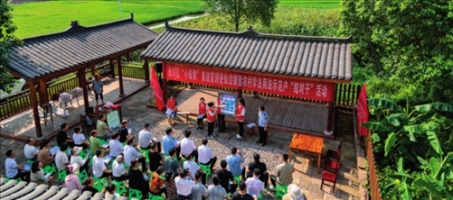 重慶市永川區(qū)農(nóng)業(yè)綜合行政執(zhí)法支隊(duì)和永川區(qū)司法局、重慶文理學(xué)院聯(lián)合成立的“小板凳”普法宣講隊(duì),走進(jìn)仙龍鎮(zhèn)雙星村,開展普法宣講活動(2023年7月10日攝)黃偉攝/本刊