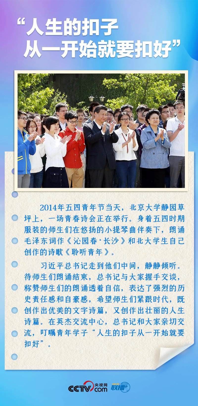 習近平總書記非常關(guān)心青年成長,多次來到青年中間,同大家推心置腹談理想信念、談人生價值、談奮斗奉獻。