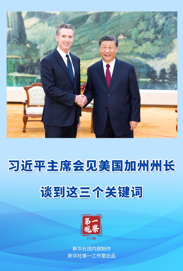 加利福尼亞,美國西海岸重要門戶,經(jīng)濟總量居全美各州首位,在對華友好交往和務實合作中長期走在全美前列。紐森此次于10月23日至29日訪華,是2020年以來第一位來訪的美國州長。在中美關(guān)系呈現(xiàn)止跌企穩(wěn)積極勢頭的關(guān)鍵時刻,習近平主席會見美國加州州長,備受中美兩國和國際社會關(guān)注。習近平主席談到的三個關(guān)鍵詞,飽含深意。