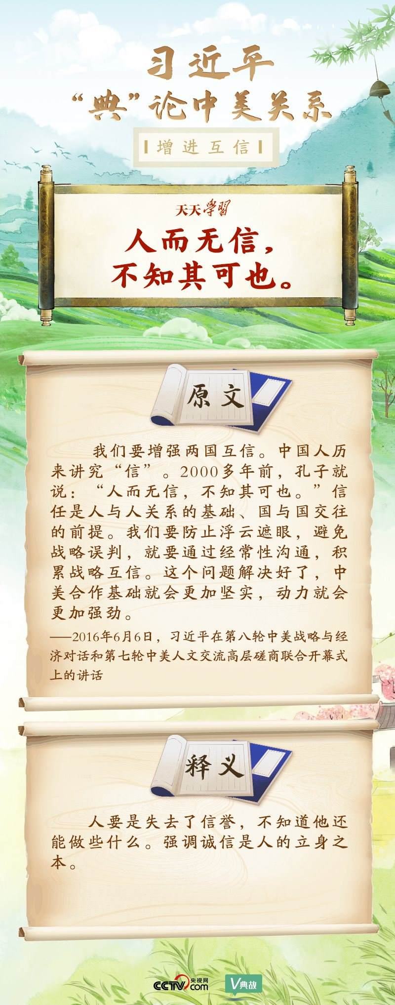 黨的十八大以來,習(xí)近平主席就中美關(guān)系發(fā)表了一系列重要講話。他站在時(shí)代高度分析、研判中美關(guān)系現(xiàn)狀及發(fā)展趨勢(shì),并引經(jīng)據(jù)典為發(fā)展中美關(guān)系指出正確方向。這些論述蘊(yùn)含深刻的戰(zhàn)略思維和政治智慧,具有重大現(xiàn)實(shí)意義和深遠(yuǎn)歷史意義。央視網(wǎng)《天天學(xué)習(xí)》與您一起深刻領(lǐng)會(huì)。