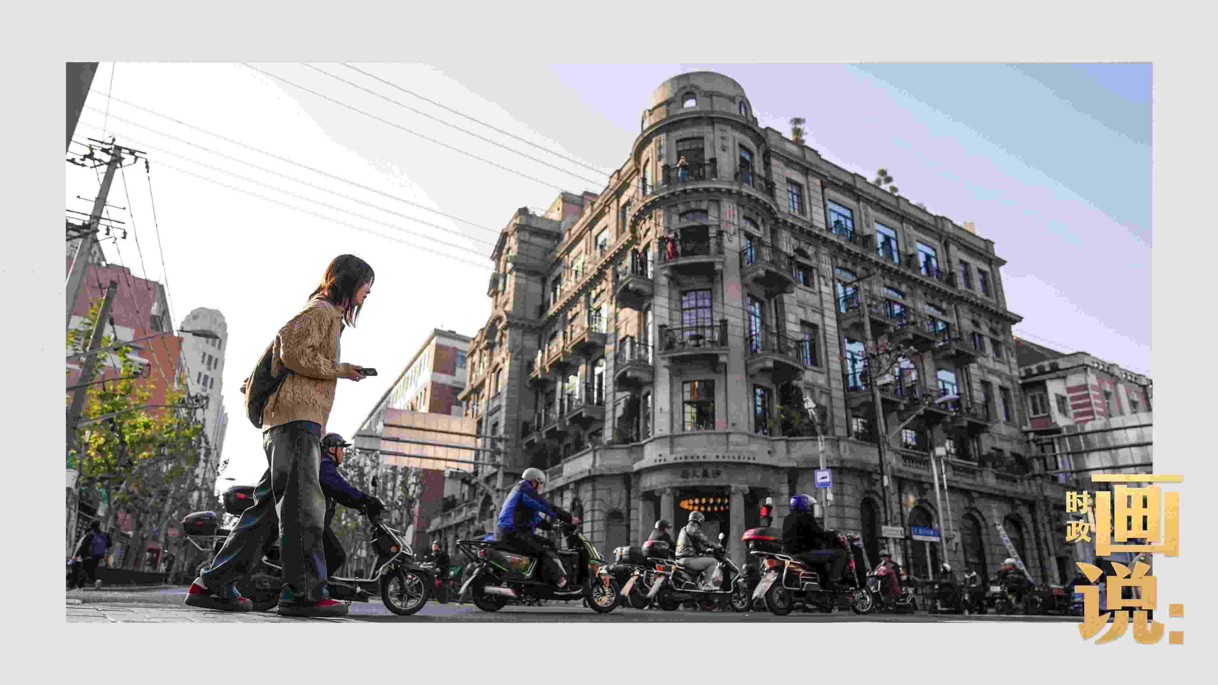 △武康大樓前留影的外籍游客興奮不已?;春V新?,上海。