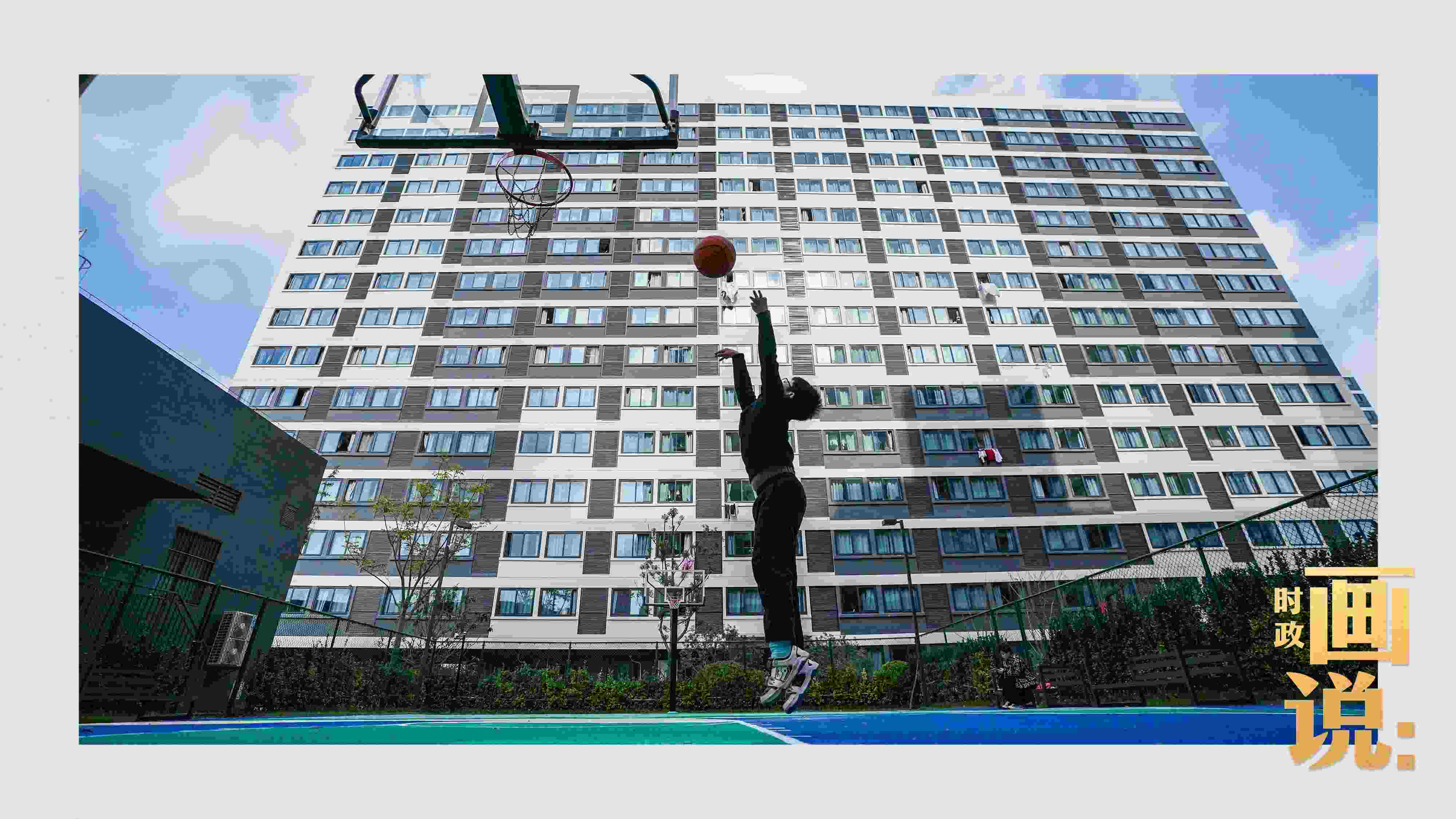 △社區(qū)籃球場(chǎng)上練習(xí)投籃的小男孩。閔行區(qū)新時(shí)代城市建設(shè)者管理者之家所在的社區(qū)是上海市首批大型保障性租賃住房項(xiàng)目之一,為許多來(lái)滬新市民、青年人和一線(xiàn)務(wù)工人員提供住房保障。閔行區(qū),上海。