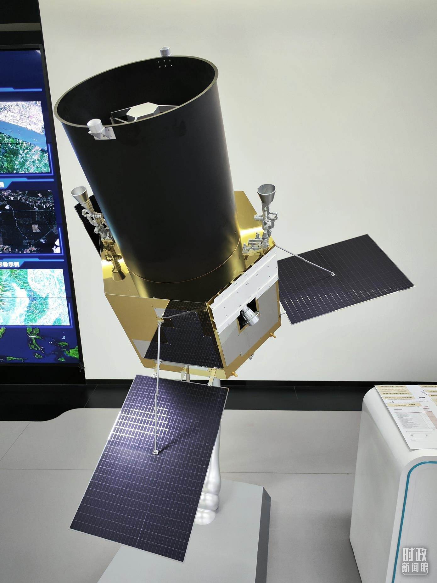 △中國-東盟信息港展示的南寧一號衛(wèi)星。(總臺央視記者李輝拍攝)