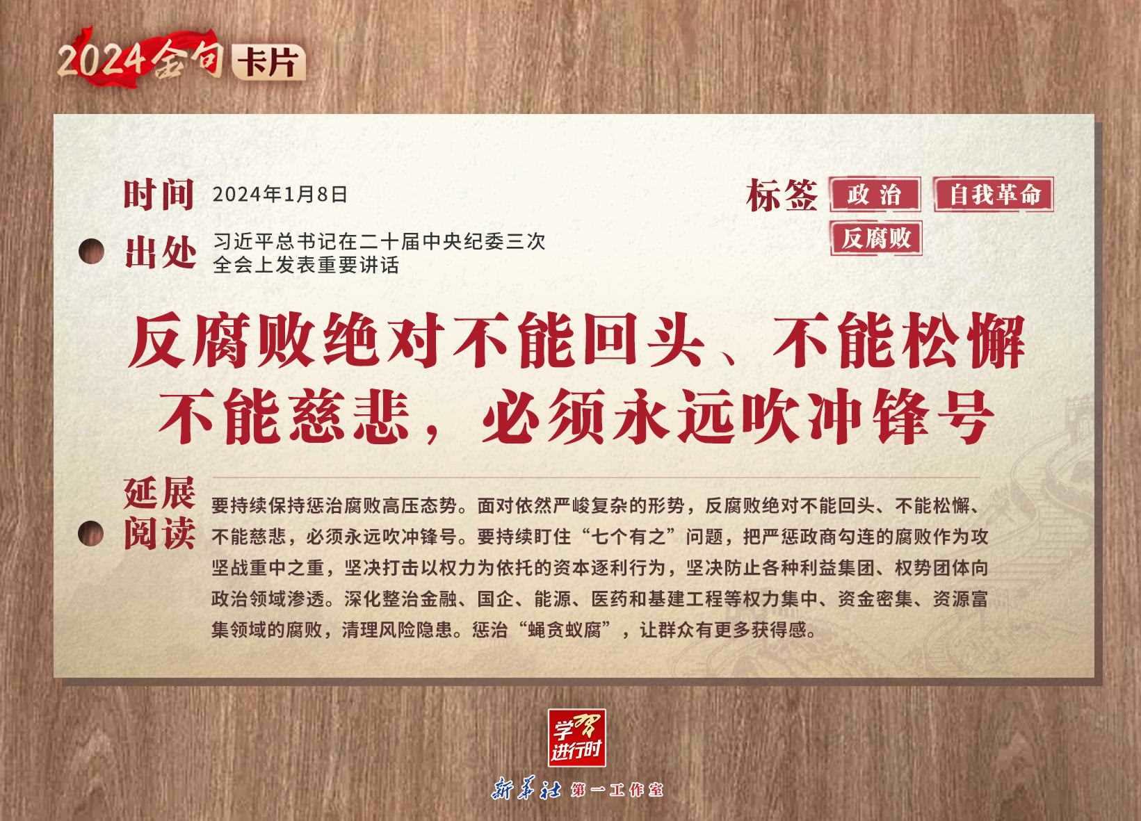 學(xué)習(xí)進(jìn)行時(shí)|2024金句卡片:中央紀(jì)委三次全會上,習(xí)近平總書記這些話振聾發(fā)聵