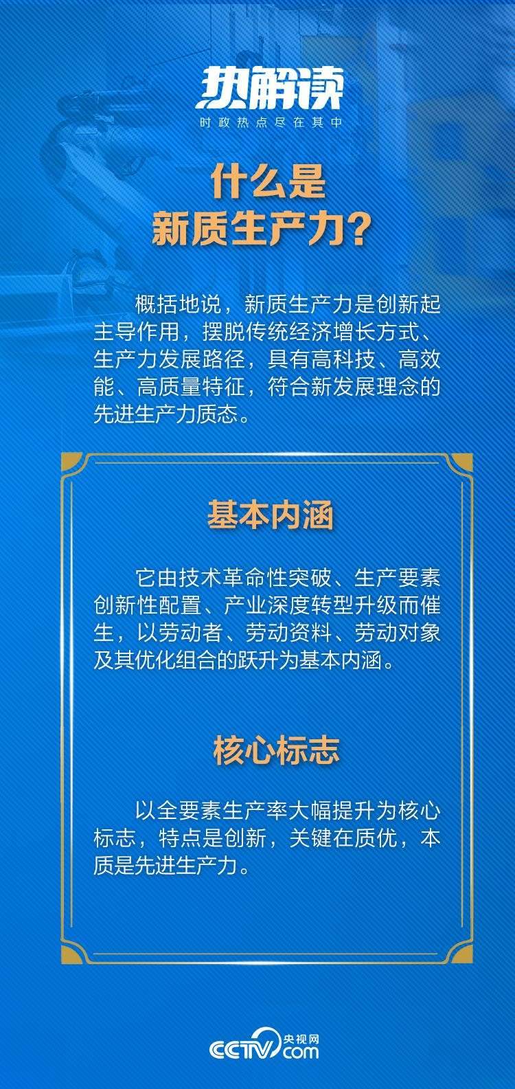 在這次集體學習中,習近平總書記首次全面系統(tǒng)闡釋了新質生產(chǎn)力的重要概念和基本內(nèi)涵,并就如何推動新質生產(chǎn)力加快發(fā)展提出明確指引,要求“必須繼續(xù)做好創(chuàng)新這篇大文章”。