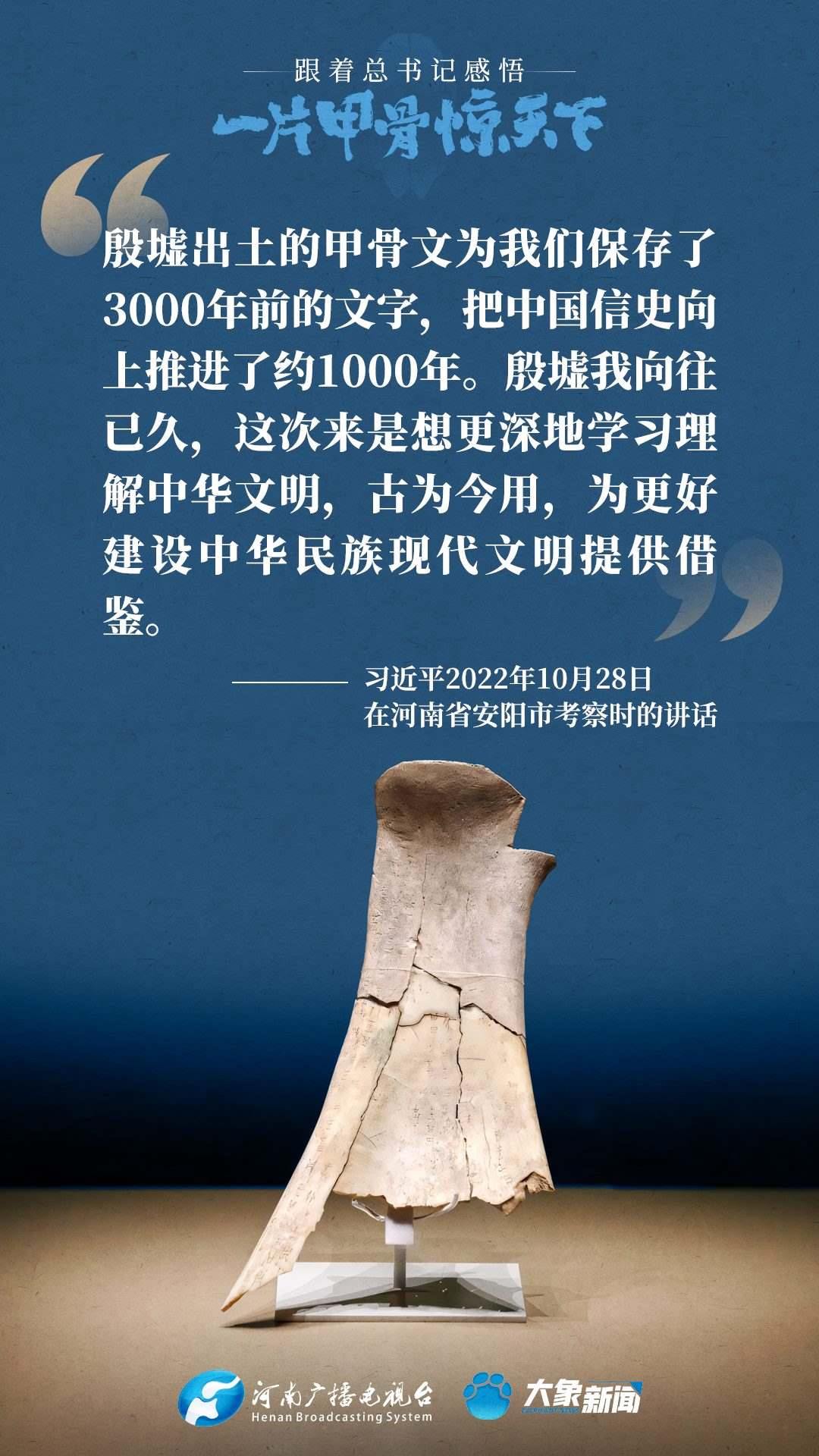 黨的十八大以來(lái),習(xí)近平總書記多次就殷墟和甲骨文保護(hù)研究利用工作作出重要講話重要指示,為我們堅(jiān)定文化自信,傳承發(fā)展中華優(yōu)秀傳統(tǒng)文化提供了根本遵循。大象新聞邀您一起回顧、學(xué)習(xí)。