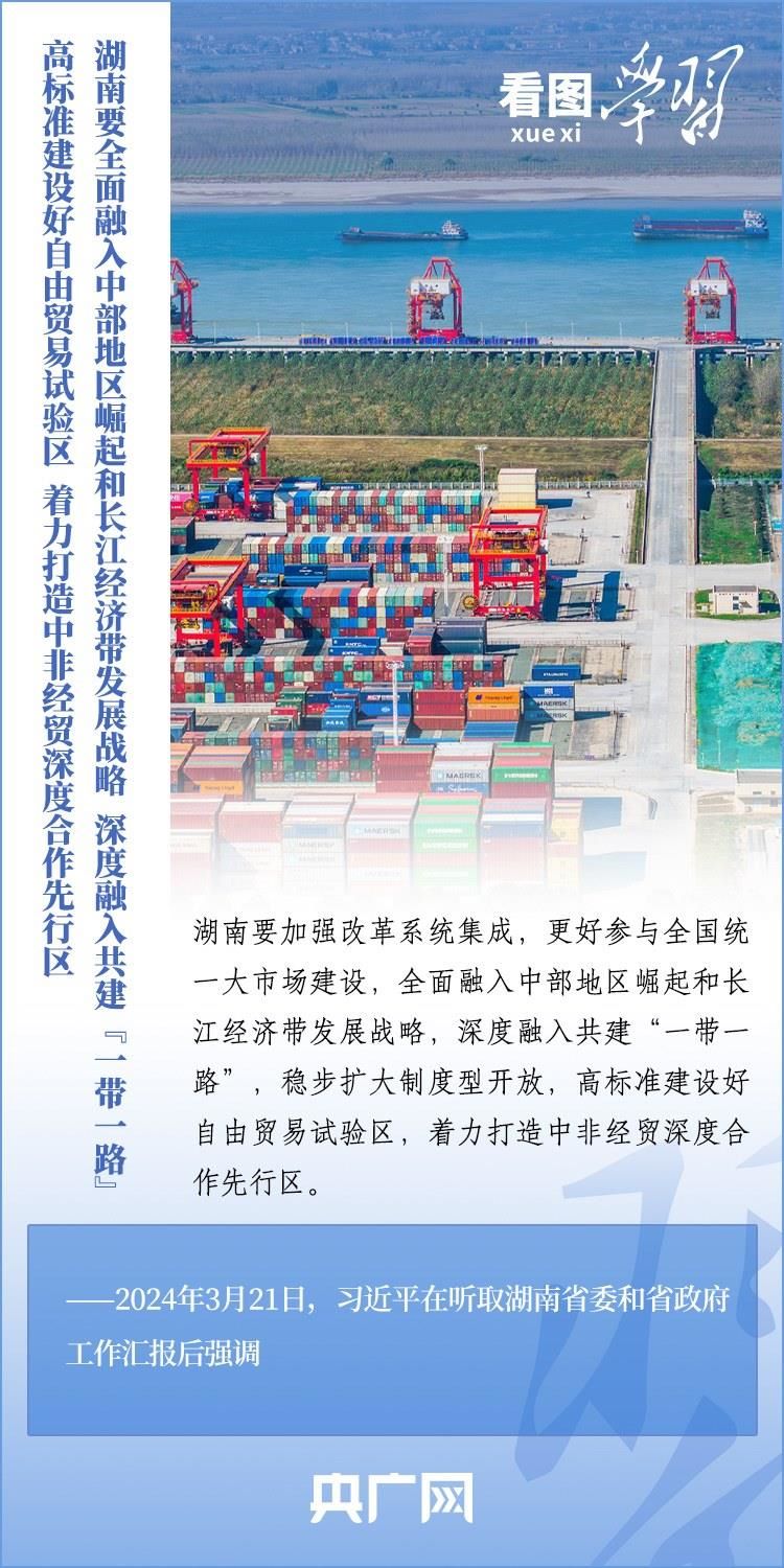 3月18日至21日,習(xí)近平總書(shū)記考察湖南長(zhǎng)沙、常德等地,深入學(xué)校、企業(yè)、歷史文化街區(qū)、鄉(xiāng)村等進(jìn)行調(diào)研??倳?shū)記強(qiáng)調(diào),湖南要牢牢把握自身在構(gòu)建新發(fā)展格局中的戰(zhàn)略定位,堅(jiān)持穩(wěn)中求進(jìn)工作總基調(diào),堅(jiān)持高質(zhì)量發(fā)展不動(dòng)搖,堅(jiān)持改革創(chuàng)新、求真務(wù)實(shí),在打造國(guó)家重要先進(jìn)制造業(yè)高地、具有核心競(jìng)爭(zhēng)力的科技創(chuàng)新高地、內(nèi)陸地區(qū)改革開(kāi)放高地上持續(xù)用力,在推動(dòng)中部地區(qū)崛起和長(zhǎng)江經(jīng)濟(jì)帶發(fā)展中奮勇?tīng)?zhēng)先,奮力譜寫(xiě)中國(guó)式現(xiàn)代化湖南篇章。一起來(lái)學(xué)習(xí)!