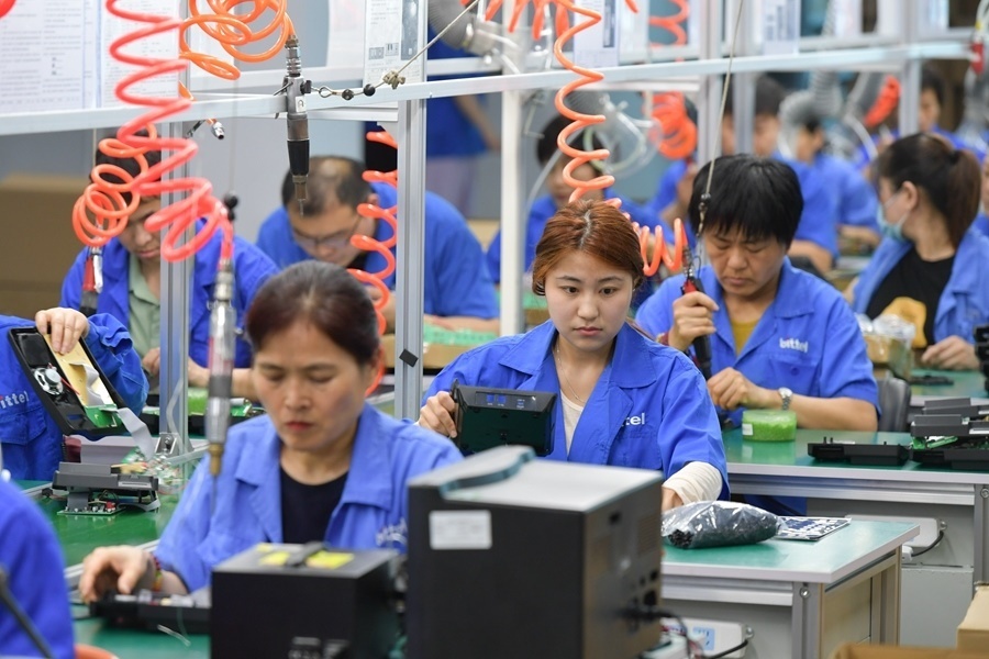 2024年5月22日,在位于日照市東港區(qū)新舊動(dòng)能轉(zhuǎn)換示范基地的山東比特智能科技股份有限公司新廠區(qū),工人在車(chē)間內(nèi)工作。新華社記者 孟濤 攝