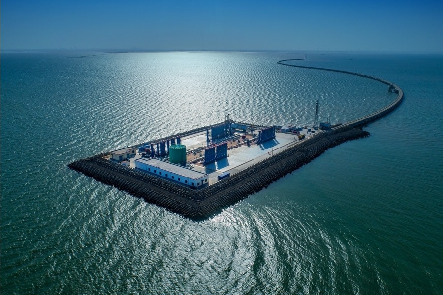這是勝利油田青東5采油平臺(tái)(無(wú)人機(jī)照片)。新華社發(fā)