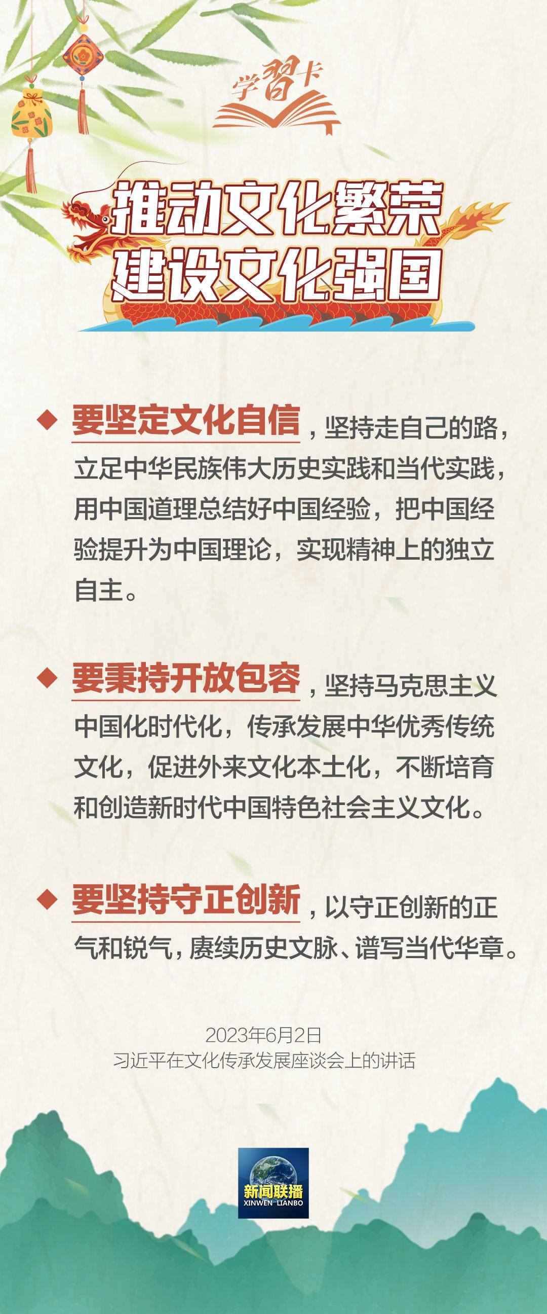在棹影斡波、鼓聲劈浪中舉行龍舟賽,品嘗軟糯可口的香粽,門上掛艾草和菖蒲……端午節(jié)生動印證了“中華優(yōu)秀傳統(tǒng)文化已經(jīng)成為中華民族的基因”,已成為弘揚民族精神、激發(fā)愛國情感的重要載體。
