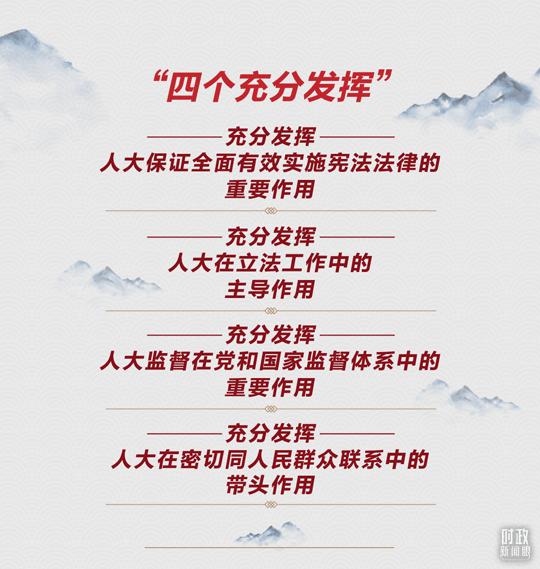在今年這次大會上,總書記作出“四個充分發(fā)揮”的重要部署,與各級人大及其常委會“四個機關”建設緊密相關。從確保憲法法律得到有效實施,到推進科學立法、民主立法、依法立法,從擔負起憲法法律賦予的監(jiān)督職責,到豐富人大代表聯系人民群眾的內容和形式,總書記提出了明確要求。
