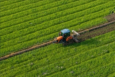 2024年3月19日,在湖南省常德市鼎城區(qū)謝家鋪鎮(zhèn)港中坪村,村民駕駛農(nóng)機(jī)翻耕田地(無(wú)人機(jī)照片)。新華社記者 陳思汗 攝