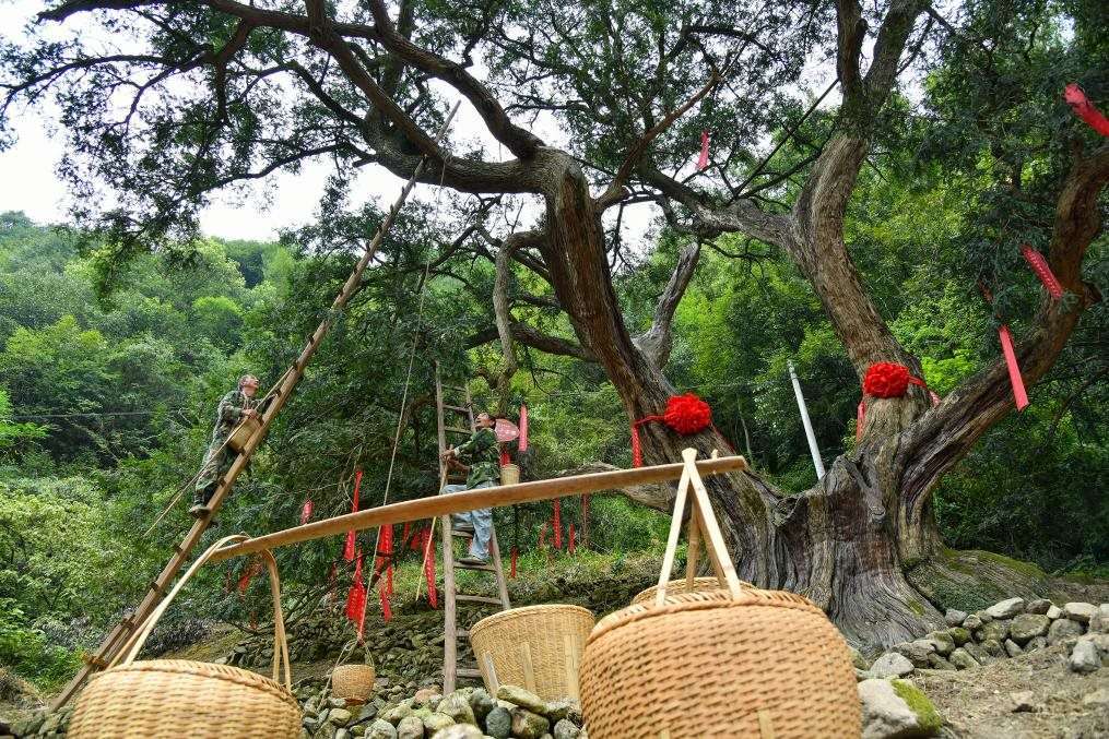 柯橋區(qū)稽東鎮(zhèn)古香榧樹(shù)在保護(hù)中煥發(fā)生機(jī),成為當(dāng)?shù)乩习傩盏摹爸赂粯?shù)”。(柯橋區(qū)委宣傳部供圖)