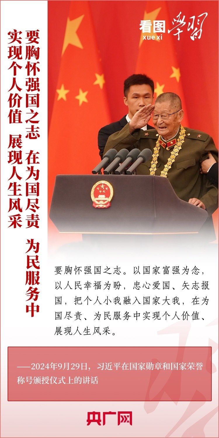 9月29日,中華人民共和國國家勛章和國家榮譽(yù)稱號(hào)頒授儀式在北京舉行,習(xí)近平總書記向國家勛章和國家榮譽(yù)稱號(hào)獲得者頒授勛章獎(jiǎng)?wù)虏l(fā)表重要講話??倳洀?qiáng)調(diào),全黨全國各族人民要以英雄模范為榜樣,團(tuán)結(jié)奮進(jìn)、砥礪前行,匯聚起共襄強(qiáng)國盛舉的磅礴力量。一起來學(xué)習(xí)!