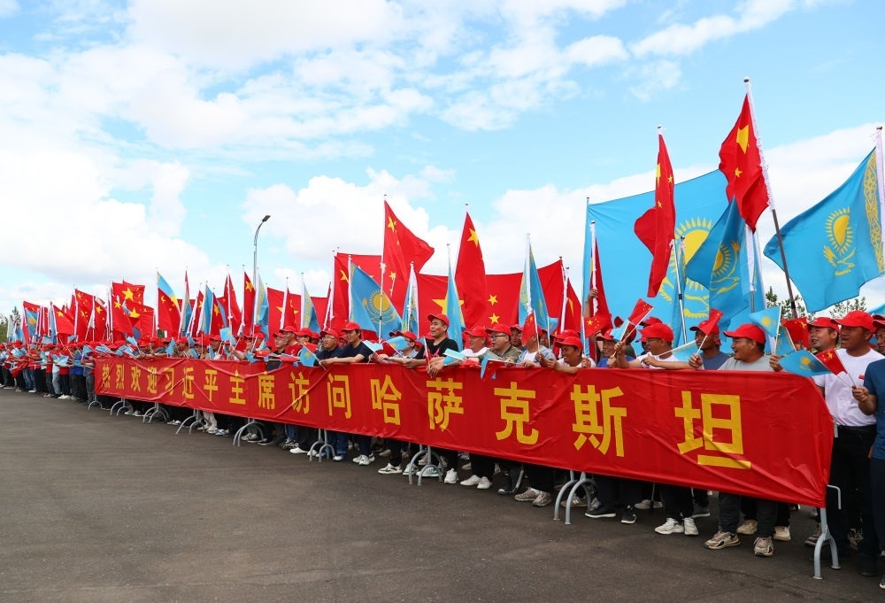 哈方在機(jī)場(chǎng)舉行隆重歡迎儀式,哈薩克斯坦少年兒童用中文演唱《歌唱祖國(guó)》。習(xí)近平乘車從機(jī)場(chǎng)赴下榻飯店途中,當(dāng)?shù)刂匈Y企業(yè)代表等候在道路兩旁,揮舞中哈兩國(guó)國(guó)旗,高舉“熱烈歡迎習(xí)近平主席訪問(wèn)哈薩克斯坦”等紅色橫幅,熱烈歡迎習(xí)近平主席到訪。