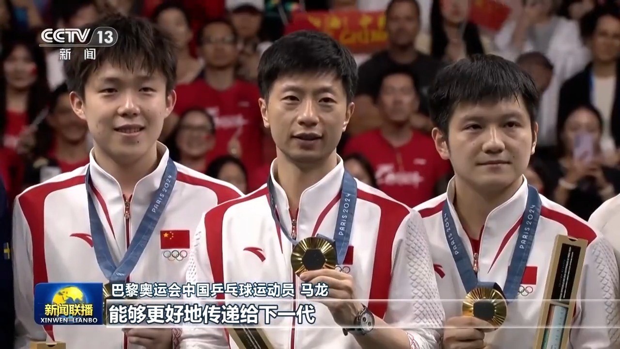 巴黎奧運(yùn)會中國乒乓球運(yùn)動員 馬龍:首先能夠在新中國成立75周年之際,不光是我自己拿到第六枚奧運(yùn)金牌,同時能夠中國代表團(tuán)在海外也取得最好成績,我還是非常開心,也非常榮幸。作為我來說,希望能夠把自己的一些比賽經(jīng)驗(yàn)以及一些對于乒乓球項(xiàng)目的理解,能夠更好地傳遞給下一代,然后希望他們能夠繼續(xù)為我們中國體育事業(yè)獻(xiàn)出自己的一份力量。