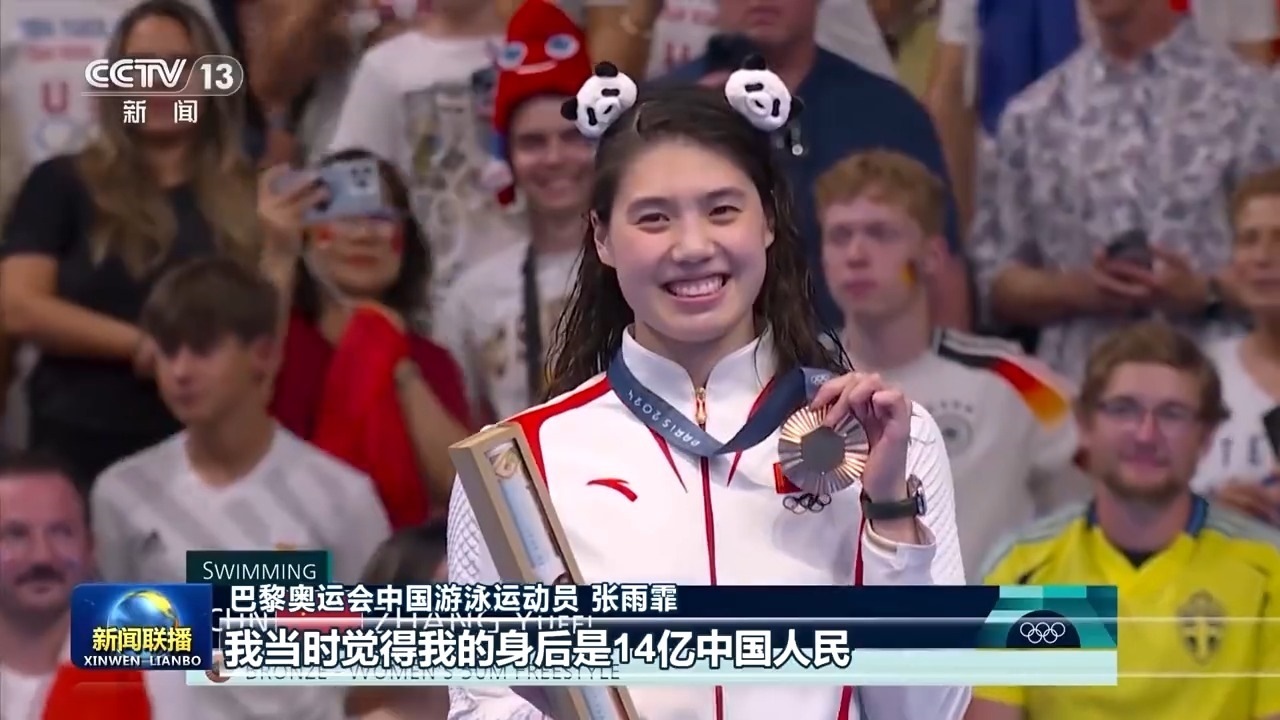巴黎奧運(yùn)會中國游泳運(yùn)動員 張雨霏:沒有想到他當(dāng)時走在我們跟前,每一名運(yùn)動員的成績和名字他都記住了,然后就是親切地與我們交談,每個人交談的內(nèi)容都不一樣。我覺得生在中國真好,特別是在賽場上的時候,我沒有拿到冠軍,但是我看見一面面五星紅旗,他們依然在為我加油吶喊,安慰我,我當(dāng)時覺得我的身后是14億中國人民。