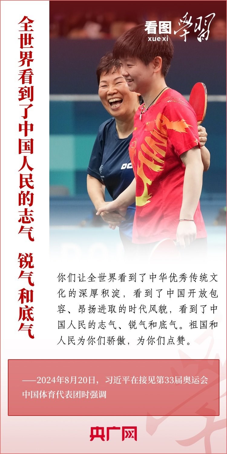 “祖國和人民為你們驕傲,為你們點(diǎn)贊?!?月20日,習(xí)近平總書記在人民大會堂接見第33屆奧運(yùn)會中國體育代表團(tuán)并發(fā)表重要講話??倳浉叨瓤隙ㄖ袊w育代表團(tuán)取得的優(yōu)異成績,贊揚(yáng)他們充分彰顯了新時(shí)代中國力量、生動詮釋了新時(shí)代中國精神、充分展現(xiàn)了新時(shí)代中國形象,勉勵大家戒驕戒躁、再接再厲,為建設(shè)體育強(qiáng)國再立新功。一起來學(xué)習(xí)!