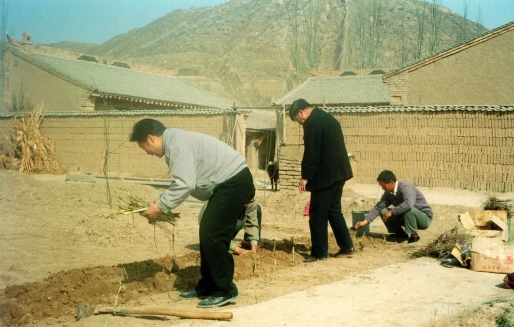 1997年4月,林占熺(左一)帶領科研團隊首次在寧夏彭陽縣試種菌草。新華社發(fā)