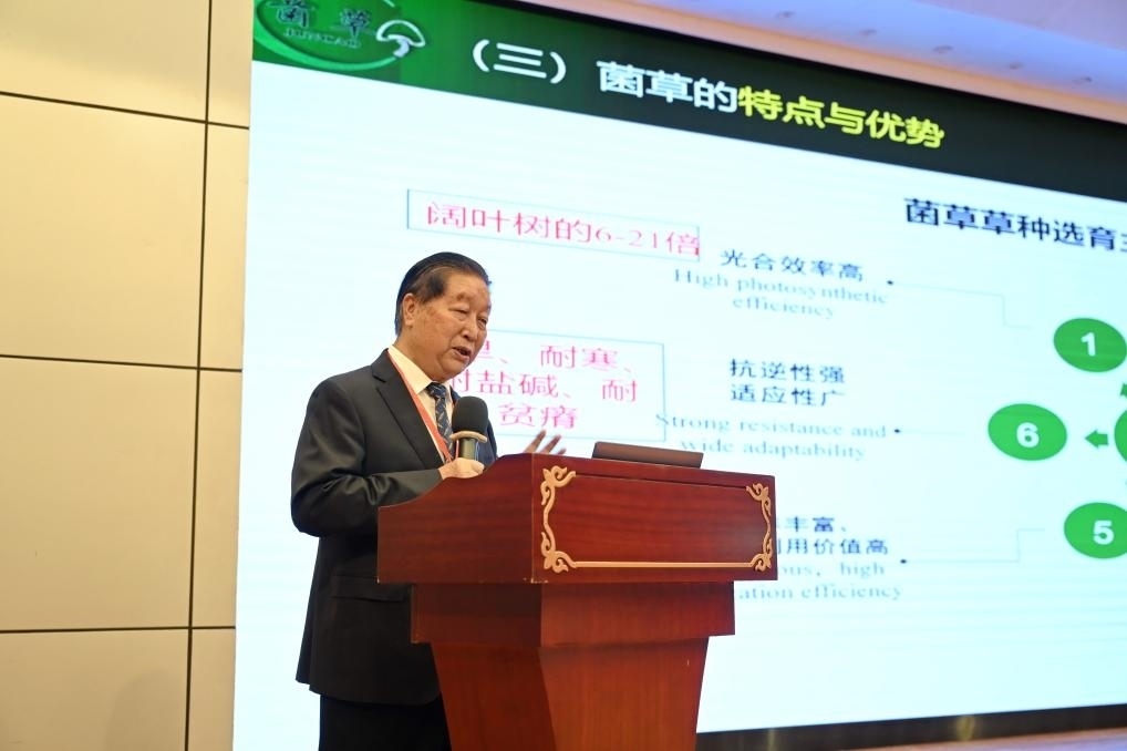 6月16日,第十九屆國際菌草產(chǎn)業(yè)發(fā)展研討會在福建福州舉行,國家菌草工程技術研究中心首席科學家林占熺發(fā)表《菌草技術助力落實聯(lián)合國可持續(xù)發(fā)展目標的潛力》主旨報告。新華社記者 林善傳 攝