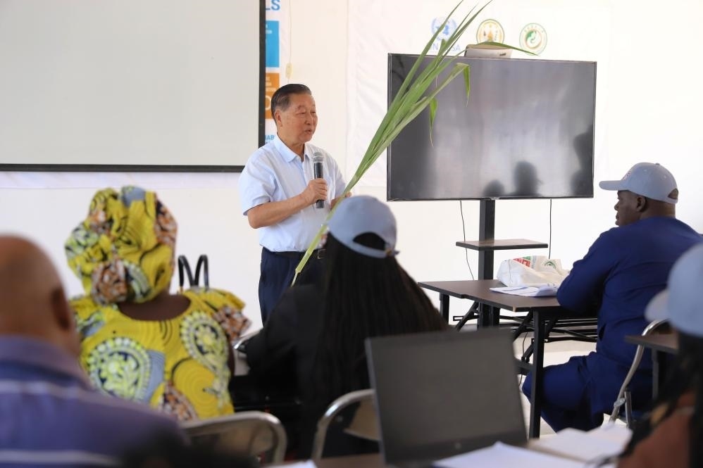 8月4日,在盧旺達南方省胡耶區(qū),林占熺為非洲地區(qū)菌草技術培訓班授課。新華社發(fā)(黃萬晴攝)