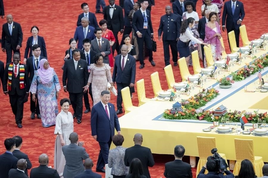 △2024年9月5日,習(xí)近平主席在北京人民大會(huì)堂出席中非合作論壇北京峰會(huì)開幕式并發(fā)表主旨講話。這是習(xí)近平主席同外方領(lǐng)導(dǎo)人共同步入會(huì)場(chǎng)。
