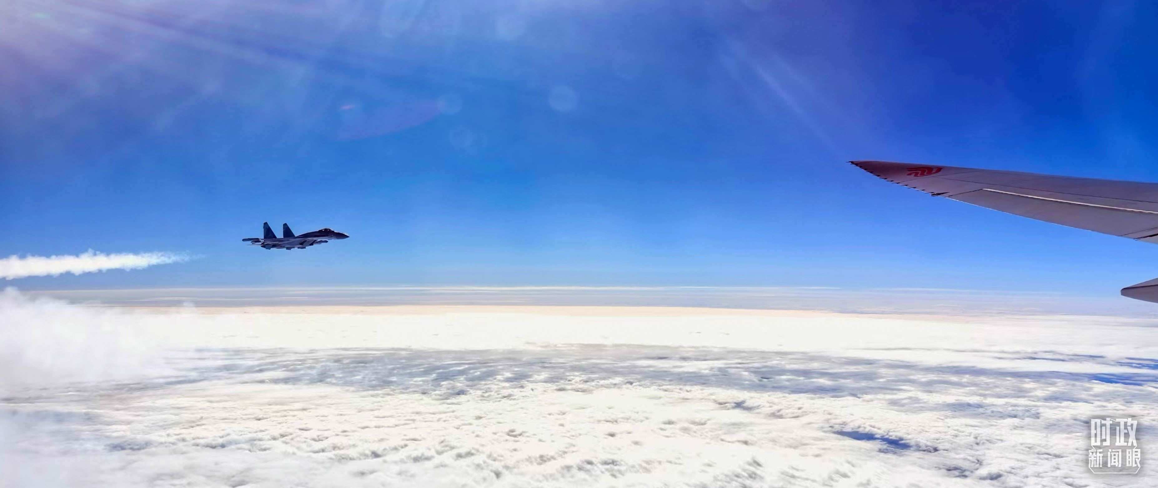 △ 習主席乘坐的專機進入俄羅斯領(lǐng)空時,俄空軍戰(zhàn)機升空護航。(總臺央視記者李錚拍攝)