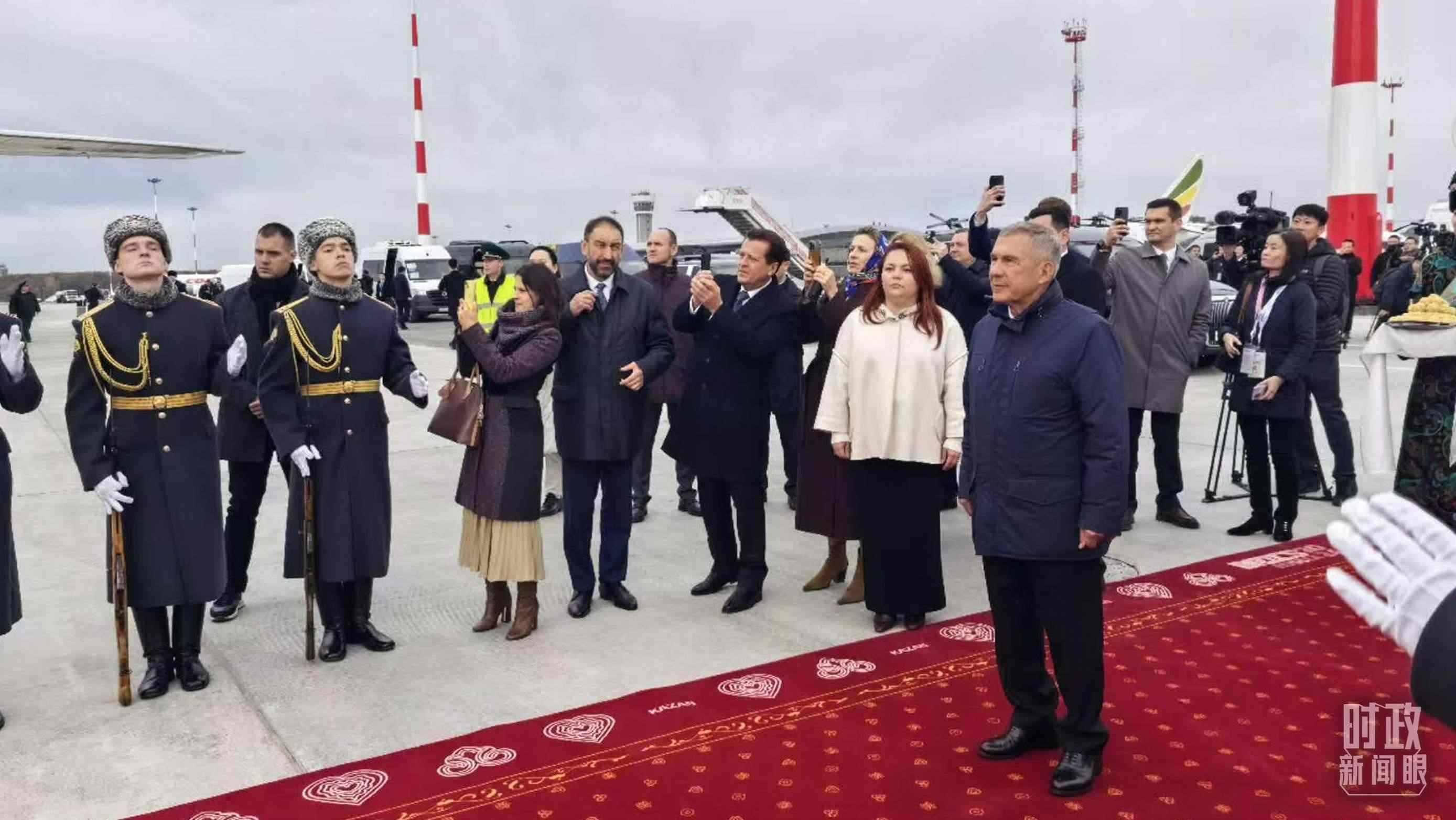 △ 習主席專機抵達喀山國際機場時,俄羅斯聯(lián)邦韃靼斯坦共和國行政長官等在機場熱情迎接。(總臺央視記者王鵬飛拍攝)