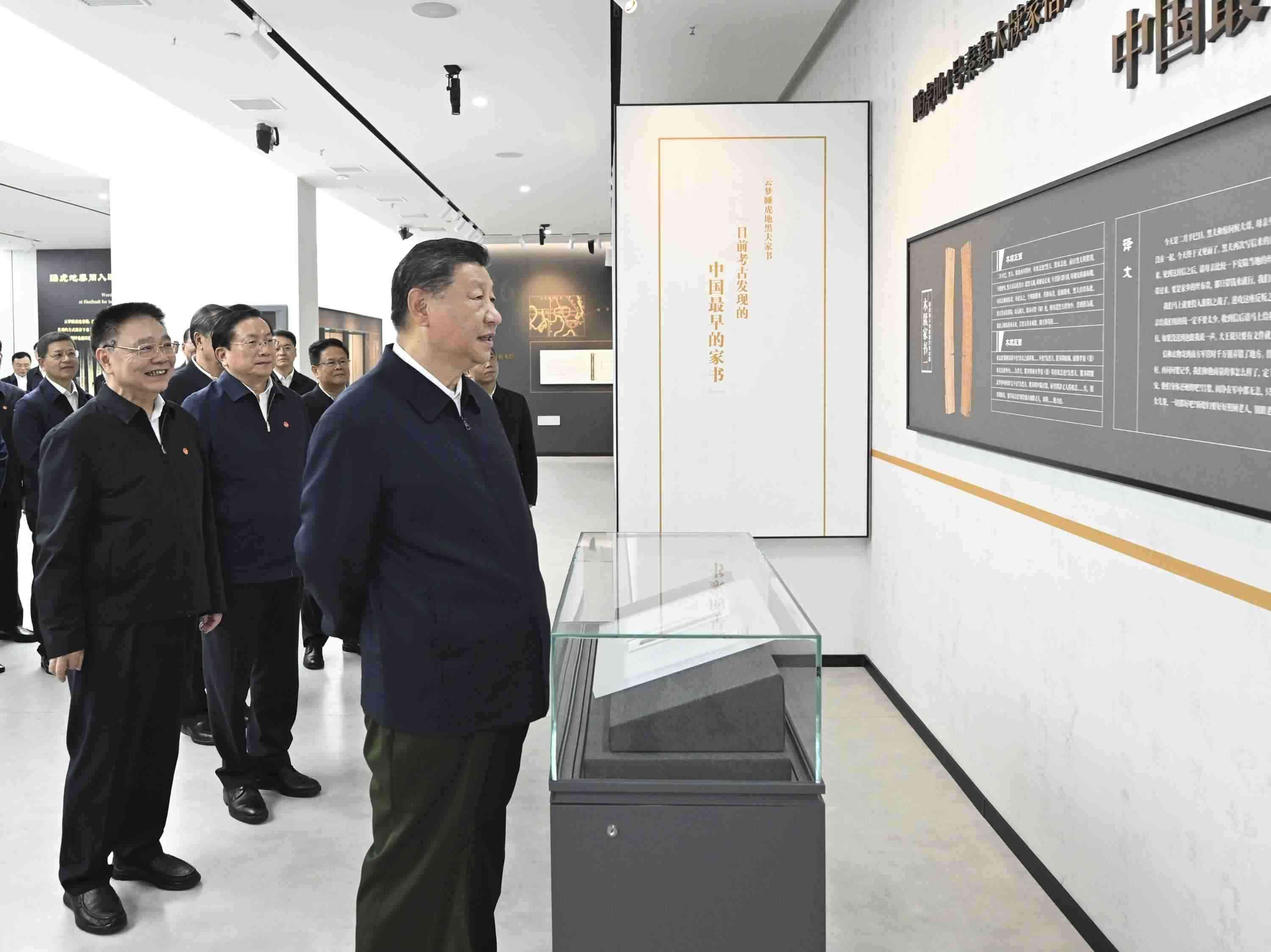 4日下午,習(xí)近平總書記來到湖北孝感市云夢縣博物館,參觀云夢出土秦漢簡牘展,詳細了解簡牘內(nèi)容、歷史文化價值和保護研究情況。習(xí)近平說,古代簡牘非常珍貴,是我們國家信史的重要實物佐證,要善加保護,做好研究。要不斷通過考古發(fā)掘,為國家歷史提供更多不容置疑的佐證材料。(人民日報客戶端杜尚澤)