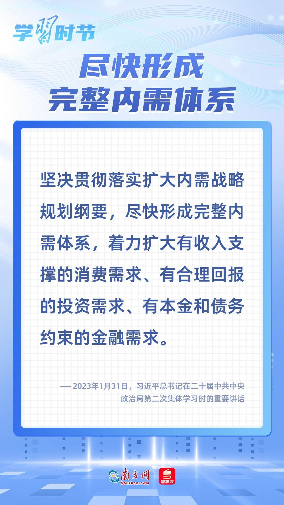 內(nèi)需是經(jīng)濟(jì)發(fā)展的基本動力,實(shí)施擴(kuò)大內(nèi)需戰(zhàn)略,是保持我國經(jīng)濟(jì)長期持續(xù)健康發(fā)展的需要。習(xí)近平總書記多次在不同場合就擴(kuò)大國內(nèi)需求作出一系列重要論述和重要部署,讓我們一起學(xué)習(xí)。
