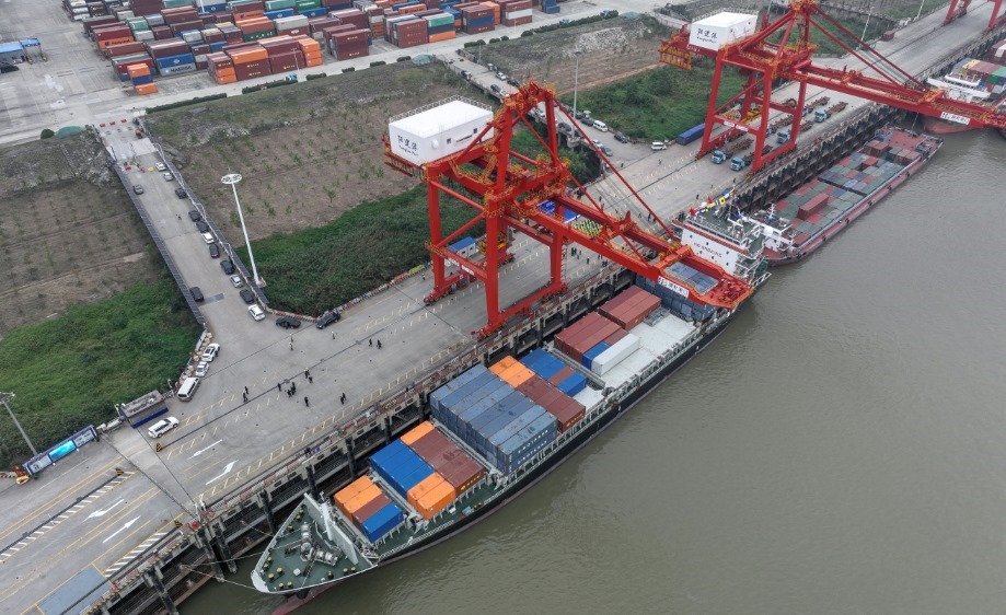 長(zhǎng)江黃金水道鏈接海上絲綢之路。自2019年11月開通首條國(guó)際航線,到2024年底,武漢陽(yáng)邏港共開通5條國(guó)際直達(dá)航線,年出入境船舶首次突破100艘。