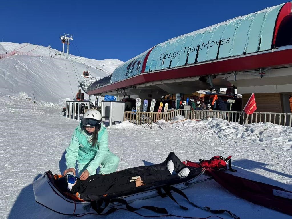 一次巡邏時,帕提曼看到一名雪友橫躺在雪道中間,雪板被甩出很遠,上前查看后發(fā)現其大腿骨折。她立即進行夾板固定、紗布包扎等操作,隨后協(xié)助轉運傷員。