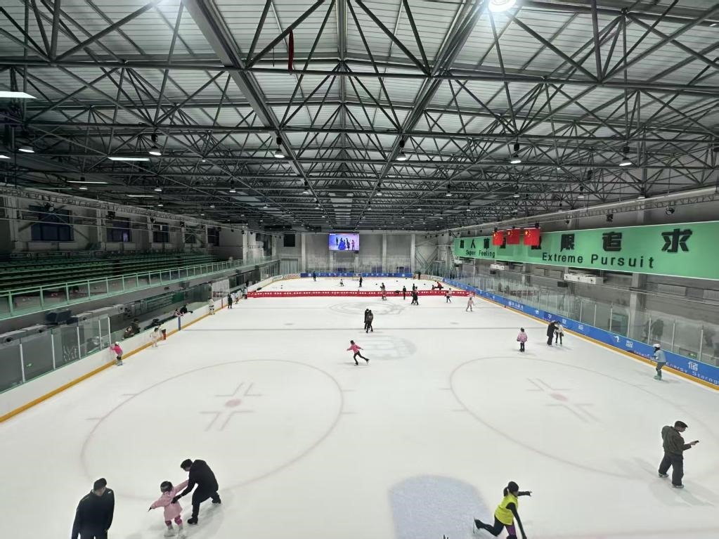 2025年1月,市民在大連冰熊冰上運動中心冰場運動。該冰場應用了大連冰山集團研制的制冰制冷控制系統(tǒng)。(孫濤 攝)
