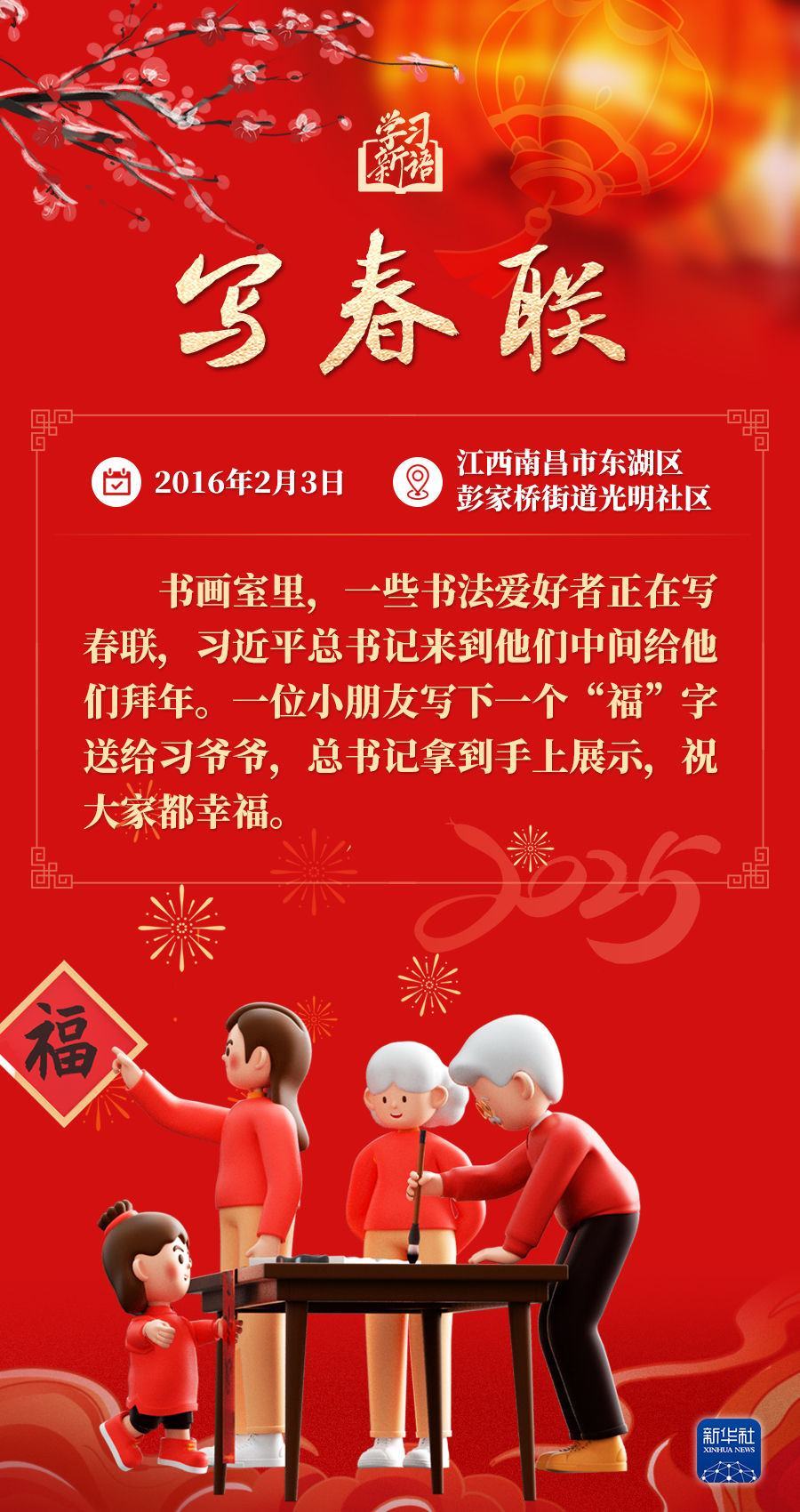 春節(jié)是中華民族的傳統(tǒng)節(jié)日。每當(dāng)春節(jié)來(lái)臨之際,習(xí)近平總書(shū)記都會(huì)走到群眾之中,送祝福、貼“?!弊?、賞民俗……和大家一起感受豐富多彩的年俗文化。