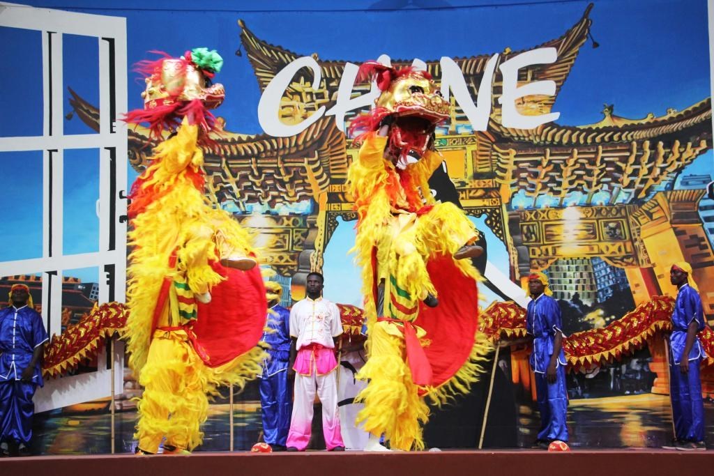 △當地時間1月25日,在貝寧科托努的貝寧中國文化中心,演員在表演舞獅慶祝春節(jié)。