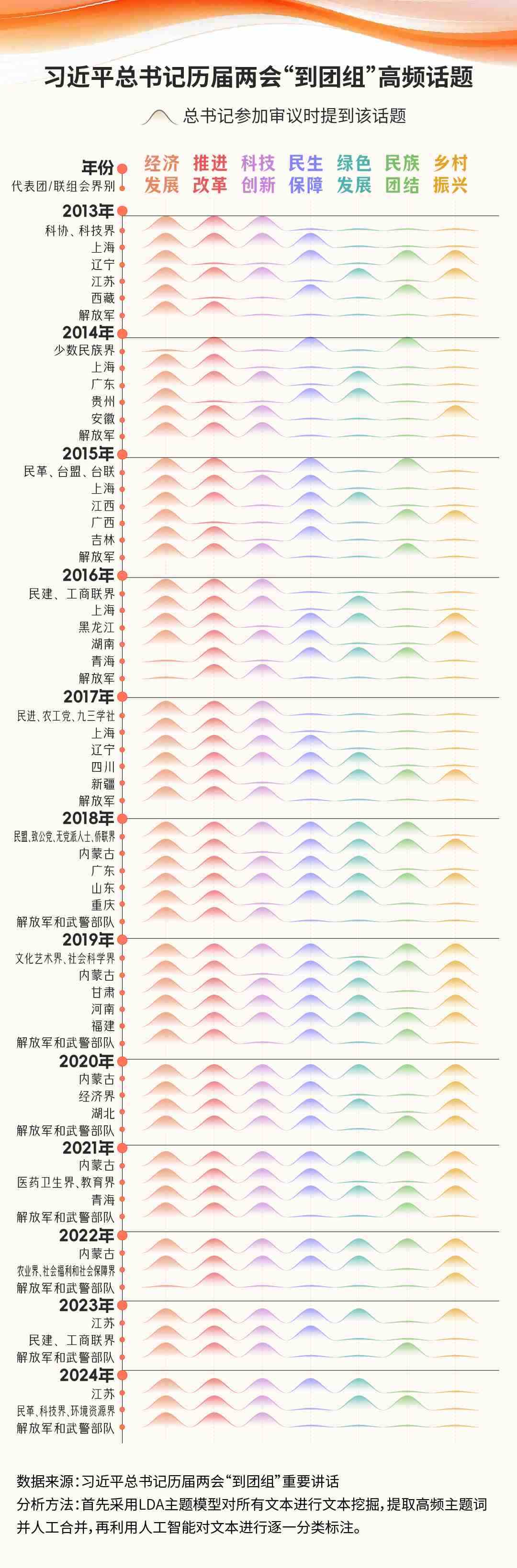 這些年的兩會(huì),習(xí)近平總書(shū)記都談及了什么話(huà)題?最經(jīng)常去哪些團(tuán)組?近年有什么新的話(huà)題是習(xí)近平總書(shū)記關(guān)心的?