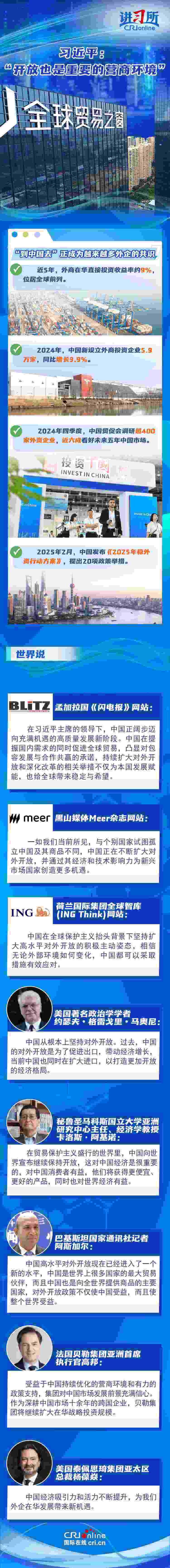 “中國開放的大門不會(huì)關(guān)閉,只會(huì)越開越大?!比ツ?2月,中國將“擴(kuò)大高水平對外開放,穩(wěn)外貿(mào)、穩(wěn)外資”列為今年政府重點(diǎn)任務(wù)。新年以來,隨著政策紅利持續(xù)釋放,外資不斷用行動(dòng)為中國投下“信心票”:德國光電行業(yè)巨頭蔡司宣布將在上海購地自建大中華區(qū)總部園區(qū),意大利百旺集團(tuán)亞洲總部暨新工廠在蘇州高新區(qū)開業(yè),日本豐田汽車決定在華獨(dú)資設(shè)立雷克薩斯純電動(dòng)汽車及電池的研發(fā)和生產(chǎn)公司……在他們看來,中國持續(xù)優(yōu)化營商環(huán)境、擴(kuò)大高水平開放,經(jīng)濟(jì)吸引力和活力不斷提升,不僅為中國發(fā)展賦能,也給全球帶來穩(wěn)定與希望。