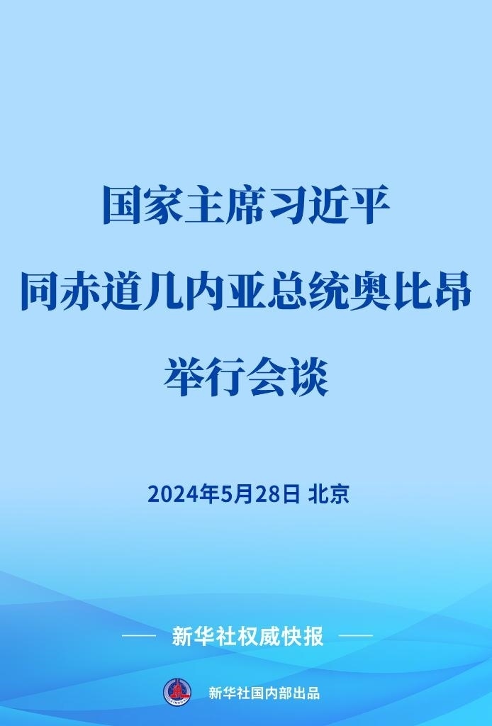 習(xí)近平同赤道幾內(nèi)亞總統(tǒng)奧比昂會(huì)談 5月28日下午,國家主席習(xí)近平在北京人民大會(huì)堂同來華進(jìn)......