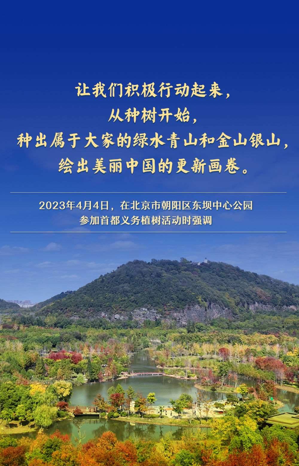 黨的十八大以來,習(xí)近平總書記高度重視國土綠化,每年都同干部群眾一起參加首都義務(wù)植樹,并作出一系列重要論述,為推進(jìn)美麗中國建設(shè)、實(shí)現(xiàn)人與自然和諧共生的現(xiàn)代化指明方向。