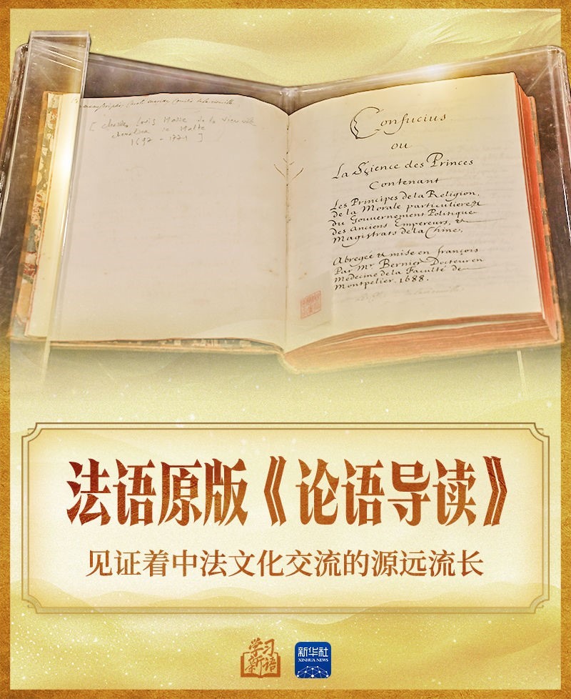 2019年3月,習(xí)近平主席訪法期間收到法國總統(tǒng)馬克龍贈(zèng)送的珍貴法文古籍《論語導(dǎo)讀》。習(xí)近平主席說:“這個(gè)禮物很珍貴,我要把它帶回去收藏在中國國家圖書館?!?/p>