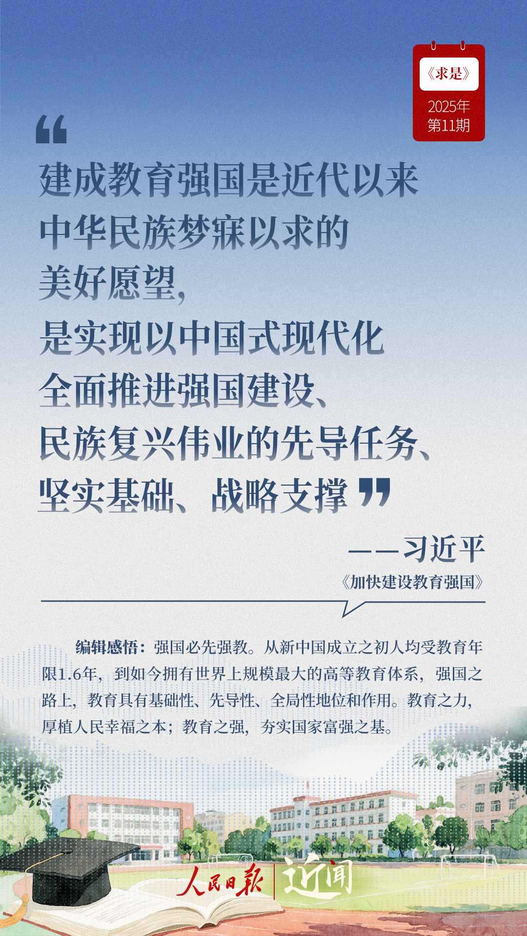 教育是國之大計、黨之大計。日前,《求是》雜志發(fā)表習(xí)近平總書記重要文章《加快建設(shè)教育強國》?!叭姘盐战逃恼螌傩浴⑷嗣駥傩?、戰(zhàn)略屬性”“讓教育改革發(fā)展成果更多更公平惠及全體人民”“讓教師享有崇高社會聲望、成為最受社會尊重的職業(yè)之一”……通過這些話,一起感悟習(xí)近平總書記對教育強國建設(shè)的謀劃與部署。