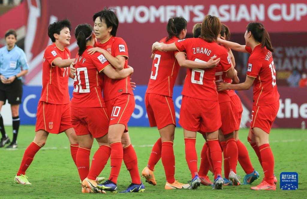 當(dāng)日,在印度孟買舉行的2022女足亞洲杯決賽中,中國(guó)隊(duì)以3比2戰(zhàn)勝韓國(guó)隊(duì),奪得冠軍。