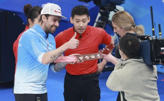 中國(guó)組合隨后也收到了美國(guó)隊(duì)回贈(zèng)的徽章