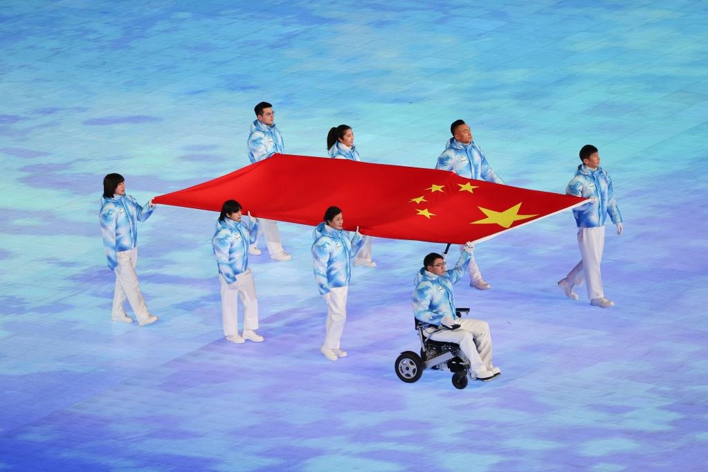 3月4日晚,北京2022年冬殘奧會(huì)開幕式在北京國家體育場舉行。這是中華人民共和國國旗入場。新華社記者 馬希平 攝