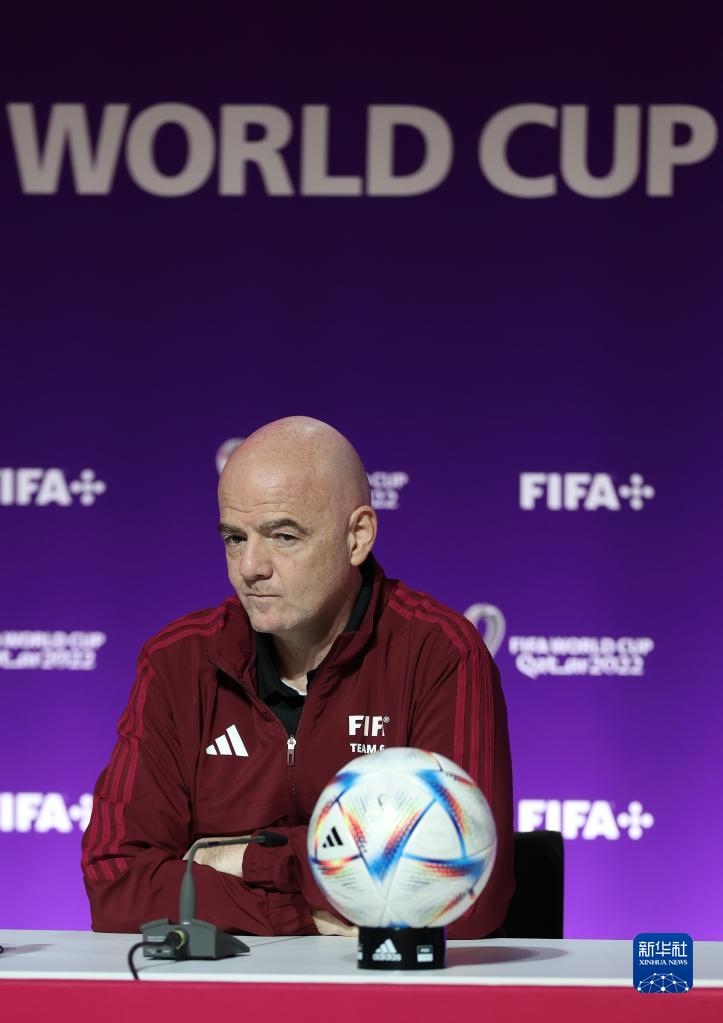 11月18日,國(guó)際足聯(lián)主席因凡蒂諾在通氣會(huì)上。新華社記者 賈浩成 攝