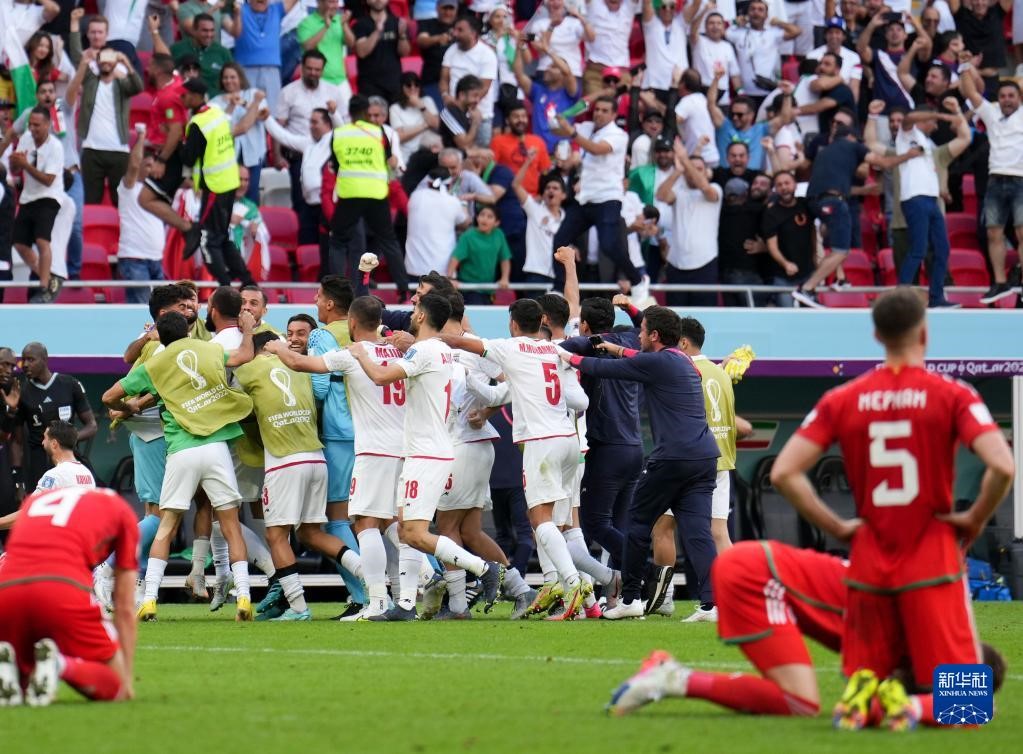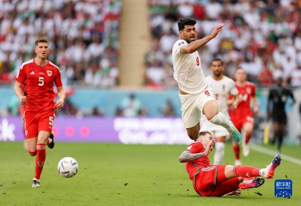 當(dāng)日,在卡塔爾多哈艾哈邁德·本·阿里體育場進行的2022卡塔爾世界杯足球賽B組比賽中,伊朗隊以2比0戰(zhàn)勝威爾士隊。
