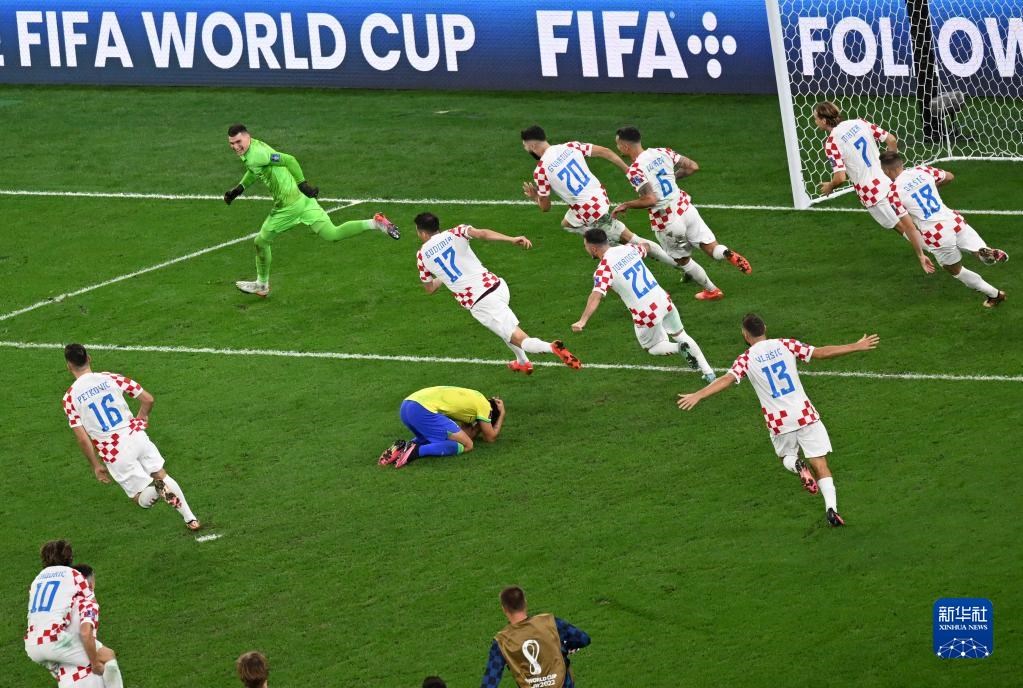 當(dāng)日,在卡塔爾賴揚教育城球場進行的2022卡塔爾世界杯足球賽四分之一決賽中,克羅地亞隊與巴西隊在常規(guī)時間和加時賽戰(zhàn)成1比1平,通過點球大戰(zhàn)克羅地亞隊以總比分5比3獲勝。